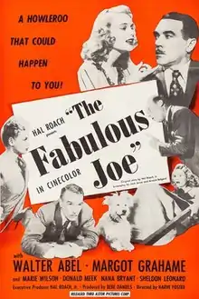 The Fabulous Joe is a 1947 American comedy film in the Hal Roach's Streamliners series. It was directed by Harve Foster and written by Arnold Belgard and Jack Jevne. The film stars Walter Abel, Margot Grahame, Marie Wilson, Donald Meek, Sheldon Leonard and Howard Petrie.[1] It was released on October 7, 1947 by United Artists.[2][3]