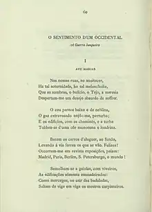 1. Or, O Sentimento d'um Occidental, as it was spelled in the first edition, published before the 1911 spelling reform.