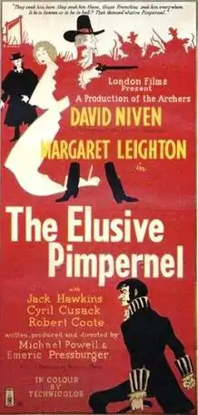 The Elusive Pimpernel is a 1950 British period adventure film by the British-based director-writer team of Michael Powell and Emeric Pressburger, based on the novel The Scarlet Pimpernel (1905) by Baroness Emmuska Orczy. It was released in the United States under the title The Fighting Pimpernel. The picture stars David Niven as Sir Percy Blakeney (a.k.a. The Scarlet Pimpernel), Margaret Leighton as Marguerite Blakeney and features Jack Hawkins, Cyril Cusack and Robert Coote. Originally intended to be a musical, the film was re-worked as a light-hearted drama.