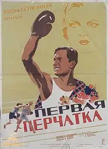 The First Glove (Russian: Первая перчатка, romanized: Pervaya perchatka) is a 1946[1][2] Soviet sports comedy film directed by Andrey Frolov [3][4][5] about young boxer Nikita Krutikov.[6]