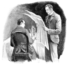 ![]() Watson reads Holmes the latest news about their client John Openshaw, 1891 illustration by Sidney Paget | |||