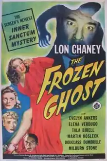 The Frozen Ghost is a 1945 American film noir mystery film starring Lon Chaney Jr., Elena Verdugo, Evelyn Ankers, Tala Birell, and Martin Kosleck, and directed by Harold Young.[1] It is the fourth of the six "Inner Sanctum" mystery films.[2]
