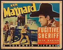 The Fugitive Sheriff is a 1936 American Western film directed by Spencer Gordon Bennet and starring Ken Maynard, Beth Marion and Walter Miller.[1]