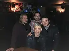 Left to Right: Hosts Ash Kernsworth, Craig Hazell and Tom Holmes. Front: Actor Dominic Monaghan in 2017
