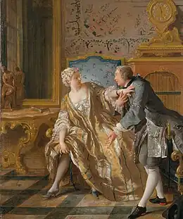 The Garter is an oil on canvas painting by French painter Jean-François de Troy, from 1724. It is held at the Metropolitan Museum of Art, in New York. A pendant painting to this one is The Declaration of Love, of the same year.[1]