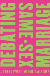 Corvino co-authored Debating Same-Sex Marriage (2012) with Maggie Gallagher, co-founder of the National Organization for Marriage (NOM). The book received praise from both proponents and opponents of same-sex marriage. In the San Francisco Book Review, Elizabeth Raymond wrote, "Debating Same-Sex Marriage's format is quite interesting – and massively effective . . . It's like witnessing a live debate between these two lively characters . . . I highly recommend this to all – if only for a manual on how to respectfully debate a member of the opposing viewpoint. Well done!"[12] Among other positive reviews were those from LGBT rights activist Dan Savage,[12] Republican senator Rick Santorum,[12] Matt Reynolds of Christianity Today,[13] and Ryan T. Anderson of National Review.[14] In The Times Literary Supplement, libertarian Nigel Ashford commented that "the tone of the book—of reason and logic, respect for opponents and willingness to engage in intellectual combat—is set by Corvino himself in his examination of the case against homosexuality, and by the inclusion of a rebuttal of his own arguments."[15]