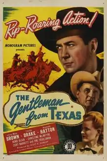 The Gentleman from Texas is a 1946 American Western film directed by Lambert Hillyer and written by J. Benton Cheney. The film stars Johnny Mack Brown, Claudia Drake, Raymond Hatton, Reno Browne, Christine McIntyre and Tris Coffin. The film was released on June 8, 1946, by Monogram Pictures.[1][2][3]