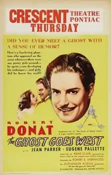 The Ghost Goes West is a 1935 British romantic comedy/fantasy film starring Robert Donat, Jean Parker, and Eugene Pallette, and directed by René Clair, his first English-language film. The film shows an Old World ghost dealing with American materialism.