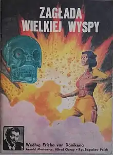 In the late 1970s Polish writer and publisher, Alfred Górny, became interested in the ideas of Erich von Däniken and started publishing his books in Poland. Shortly afterward he started a collaboration with the German publisher Econ Verlag (and later Bastei Verlag) on a comic book series, offering Polish writers and illustrators for the joint venture. Górny collaborated on the scripts with another Polish writer and a fellow enthusiast of Däniken's theories, Arnold Mostowicz, and for the illustrator they chose Bogusław Polch.[lower-alpha 1] The series was published in eight books in Germany, from 1978 to 1982. It was also published in Poland, from 1982 to 1990, by Krajowa Agencja Wydawnicza; however in 1990, after publishing volume 7, KAW went through reorganization and ceased publication of the series. The final volume 8 would not be published in Poland until the early 2000s.[2][4][5][6] While most attribute the delay of the publication of the last volume in Poland to accidental, unfortunate timing, it has also been suggested that the controversial theme of the last volumes, dealing with Biblical history, might have been an additional factor in the delay, as the publishers might have wanted to avoid antagonising the Catholic Church, which had become resurgent in Polish politics.[7]