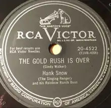"The Gold Rush Is Over" is a song written by Cindy Walker, sung by Hank Snow, and released on the RCA Victor label (catalog no. 20-4522). In April 1952, it peaked at No. 2 on Billboard's country and western juke box chart (No. 4 best seller and jockey).[1] It spent 18 weeks on the charts and was ranked No. 10 on Billboard's 1952 year-end country and western juke box chart and No. 13 on the year-end best seller chart.[2]