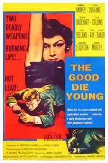 The Good Die Young is a 1954 British crime film directed by Lewis Gilbert and starring Laurence Harvey, Gloria Grahame, Joan Collins, Stanley Baker, Richard Basehart and John Ireland.[1] It was made by Remus Films from a screenplay based on the 1953 novel of the same name by Richard Macaulay. It tells the story of four men in London with no criminal past whose marriages and finances are collapsing and, meeting in a pub, are tempted to redeem their situations by a robbery.