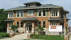 The Gramse, also known as The Nicholson, historic apartment building located at Indianapolis, Indiana. It was built in 1915, and is a two-story, Bungalow / American Craftsman style, yellow brick and limestone building on a raised brick basement. It has a cross-hipped roof with dormers. It features stuccoed section and decorative half-timbering, three-sided bay windows, and corner porches. The building has been converted to condominiums.[2]: 5