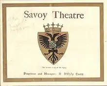 While Gilbert and Sullivan finished writing the show, the Cartes produced a revival of The Mikado at the Savoy Theatre, opening on 6 November 1895. Rehearsals for The Grand Duke began in January.[19] Sullivan wrote the overture himself, effectively weaving together some of the best melodies in the opera.[20] Gilbert made a few additional changes to the libretto shortly before opening night to avoid giving offense to Kaiser Wilhelm, possibly at the request of Sullivan, who valued the Kaiser's friendship. These included changing the name of the title character from Wilhelm to Rudolph.[20]