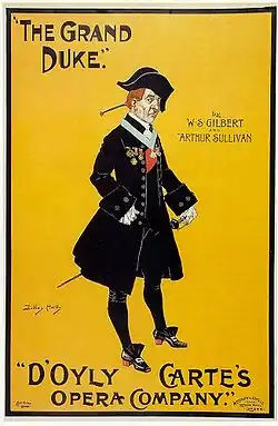 The Grand Duke; or, The Statutory Duel, is the final Savoy Opera written by librettist W. S. Gilbert and composer Arthur Sullivan, their fourteenth and last opera together. It premiered at the Savoy Theatre on 7 March 1896, and ran for 123 performances. Despite a successful opening night, the production had a relatively short run and was the partnership's only financial failure, and the two men never worked together again. In recent decades, the opera has been revived professionally, first in the US and then in the UK.