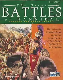 The Great Battles of Hannibal was announced by developer Erudite Software and publisher Interactive Magic in early 1997, alongside its sequel Caesar.[1] Erudite had signed with Interactive Magic in mid-1996 to publish Hannibal's predecessor, The Great Battles of Alexander, after that game's long and troubled development history.[2][3] The publisher declared its intent to publish all three games as the Great Battles series in January 1997, and assigned S. Craig Taylor to be their producer.[1] GMT Games assisted in the creation of the series, and each entry was based on one of its board titles.[4][5] While Alexander derived from GMT's board wargame of the same name, Erudite built Hannibal on SPQR,[6] part of the same series. The physical Great Battles titles were known as commercial successes in a period of falling sales for the medium.[7]