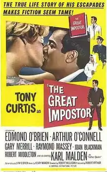 The Great Impostor is a 1961 American comedy-drama film based on the story of an impostor named Ferdinand Waldo Demara. Loosely based on Robert Crichton's 1959 biography of the same name, it stars Tony Curtis in the title role and was directed by Robert Mulligan. The film only generally follows Demara's real-life exploits, and is much lighter in tone than the book on which it is based.