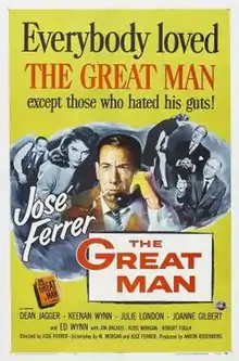 The Great Man is a 1956 American film noir drama film directed by and starring José Ferrer. The screenplay was written by Ferrer and Al Morgan, Morgan's novel of the same name the source material. It was loosely based on the controversial career of Arthur Godfrey, a beloved TV and radio host whose image had been tarnished by a number of cast firings and Godfrey's contentious battles with the press.