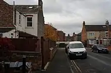 The district is near York Hospital and the city ring road. In the 19th century the area was populated by poor working-class inhabitants of long rows of back-to-back houses.[1] It consists largely of close-knit terraces, the majority of which date from the first two decades of the 20th century.[2] In the early 1960s, a large number of very small terraced houses were demolished to make way for flats and maisonettes which were built between Garden Street, Penleys Grove/Townend Street and Lowther Street;[3] this area has a residents' association.[4]