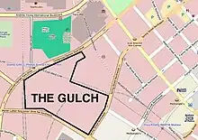 The Gulch area forms a shape roughly like a capital letter "P" on its side, bounded by:[1]