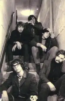 The Hangmen were founded in 1964 by bassist Mike West and rhythm guitarist George Daly at Montgomery Junior College in Rockville, Maryland.[2][3][4] In 1965 they recruited fellow Montgomery students guitarist Tom Guernsey and drummer Bob Berberich previously from a band called the Reekers, who were on indefinite hold after two members Joe Triplett and Mike Henley departed for college. [2][3][4] Guernsey, who had been the Reekers' leader and principal songwriter, was reluctant at first to leave his former band for The Hangmen, but later changed his mind and joined. [2][4] The Hangmen now needed a vocalist and, wishing to project an image that would be in line with the British Invasion, guitarist George Daly contacted the British Embassy asking for a British singer.[2][3] He was first referred to a female vocalist, but she, in turn, introduced the group to Dave Ottley, a hairdresser for Vincent Hair Stylists, who had been in the United States for two years. [2][3] Ottley was from Glasgow, Scotland, though some newspaper articles covering the band at the time suggested that he was from Liverpool, a town popularly noted for its being the hometown of The Beatles. [2] The first news story about the band appeared in the Washington Evening Star on April 3, 1965, mentioning their appearance in a battle of the bands at the Shirlington Shopping Center in which they lost to the local band the Shadows.[2] In