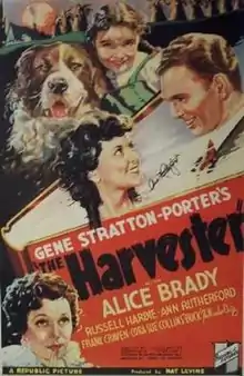 The Harvester is a 1936 American comedy film directed by Joseph Santley and written by Homer Croy, Robert Lee Johnson, Elizabeth Meehan and Gertrude Orr. It is based on the 1911 novel The Harvester by Gene Stratton-Porter, which had previously been turned into a 1927 silent film of the same title. The film stars Alice Brady, Russell Hardie, Ann Rutherford, Frank Craven, Cora Sue Collins and Emma Dunn. The film was released on April 18, 1936, by Republic Pictures.[1][2][3]