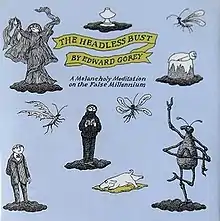 The Headless Bust: A Melancholy Meditation on the False Millennium is an illustrated book by American author/illustrator Edward Gorey, and is a sequel to his The Haunted Tea Cozy dedicated to the memory of Lancelot Brown. The story features the Bahhumbug throughout its 30 illustrated panels colored in black, white, brown, yellow and light blue. In rhyming verse it explores the baffling human condition, leaving the characters as well as the reader with more questions than answers.[1]
