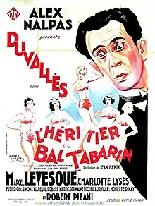 The Heir of the Bal Tabarin (French: L'héritier du Bal Tabarin) is a 1933 French comedy film directed by Jean Kemm and starring Frédéric Duvallès, Charlotte Lysès and Germaine Michel.[1] [2] It was based on the 1919 stage farce of the same title by André Mouëzy-Éon and Nicolas Nancey. It was shot at the Joinville Studios of Pathé-Natan. The film's sets were designed by the art director Jacques Colombier.