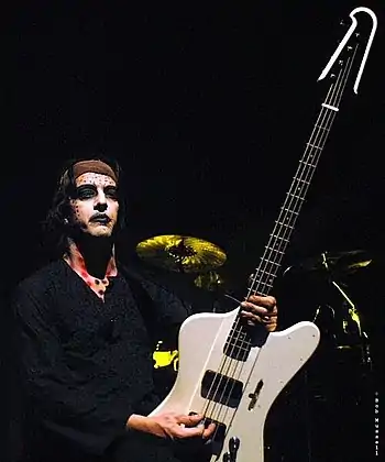 However, the following month, Manson encountered the band's former bassist, Jeordie White (aka Twiggy Ramirez), while staying at The Hollywood Roosevelt Hotel.[9] He had quit the band in 2002 as a result of creative differences during the recording sessions for their fifth studio album, The Golden Age of Grotesque (2003).[10] It was announced in January 2008 that Twiggy would be rejoining Marilyn Manson as live bassist for the rest of the "Rape of the World Tour",[11] which resulted in Sköld exiting the band.[12] Manson explained: "There's too much tension there [between Twiggy and Sköld]. Those two couldn't be on stage with each other."[13] Work began with Twiggy on new material in March 2008,[14] although future collaborations with Sköld were not ruled out.[12]