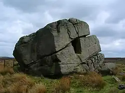 The Hitching Stone is a gritstone erratic block on Keighley Moor, North Yorkshire, near Earl Crag and the village of Cowling.[1][2][3][4] It is very close to the border between North Yorkshire and West Yorkshire and the border between Yorkshire and Lancashire.[5]