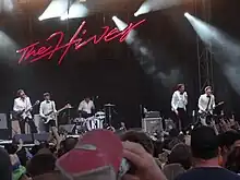 ![]() The Hives performing in July 2018; from left to right: Vigilante Carlstroem, The Johan and Only, Howlin' Pelle Almqvist, Chris Dangerous, Nicholaus Arson | |