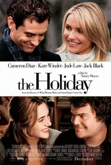 The Holiday is a 2006 American romantic comedy film written, produced and directed by Nancy Meyers. Coproduced by Bruce A. Block, it was filmed in both California and England and stars Kate Winslet and Cameron Diaz as Iris and Amanda, two lovelorn women from opposite sides of the Atlantic Ocean, who arrange a home exchange to escape heartbreak during the Christmas and holiday season. Jude Law and Jack Black were cast as the film's leading men Graham and Miles, with Eli Wallach, Shannyn Sossamon, Edward Burns, and Rufus Sewell playing key supporting roles.