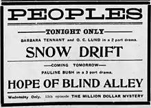 The Hopes of Blind Alley is a 1914 American silent drama film directed (and co-written) by Allan Dwan and featuring Murdock MacQuarrie, Pauline Bush and Lon Chaney. A still exists showing Lon Chaney as the Italian statuette vendor.[2] The film is now considered to be lost.[3]