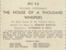 The House of a Thousand Whispers is a 1936 Australian radio play by Edmund Barclay.[1][2]