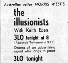 The Illusionists is a 1955 stage play by Morris West about an advertising agent who longs to paint. It was a verse drama, like his later play The Heretic.[1]