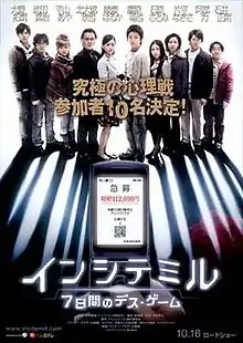 The Incite Mill (インシテミル 7日間のデス・ゲーム, Inshite Miru: 7-kakan no desu gemu, The Incite Mill: 7-Day Death Game) is a 2010 Japanese psychological thriller directed by Hideo Nakata.[1] The movie is based on Honobu Yonezawa's novel The Incite Mill.