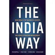 The India Way: How India’s Top Business Leaders Are Revolutionizing Management is published by the Harvard Business Press.[1] It's a non-fictional book written by Peter Cappelli, Harbir Singh, Jitendra Singh and Michael Useem of the Wharton School at the University of Pennsylvania.[2] The book was released in the United States on March 23, 2010, and was released in India in May 2010. The India Way primarily focuses on the contrast in business management styles between the U.S. and India. Topics discussed in the book include topics such as leadership skills, company governance, human resources management and innovation. The authors’ conclusions are based on an analysis of nearly 130 interviews conducted with Indian CEOs and executives.[3]