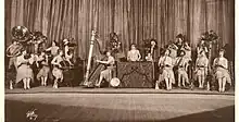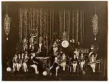 The Ingenues was a vaudeville all-female jazz band based in the American Midwest, which toured the United States and other countries from 1925 to 1937. The group was started by William Morris.[1] Managed by Edward Gorman Sherman (1880-1940), the orchestra performed with great popularity in variety theater, vaudeville and picture houses, often billed as "The Twenty Paul Whitemans of Syncopation." They performed many songs in the Ziegfeld Follies of 1927, Glorifying the American Girl, including the first act finale, "Melody Land," featuring 12 white baby grand pianos.[1] Other Follies numbers featured violins, banjoes and saxophones from The Ingenues. The group performed popular songs, light classical works and novelties. They were celebrated for their versatility, as most members, including star soloist and "trick trombonist" Paula Jones, doubled on both novelty (accordions, harmonicas, banjos) and symphonic instruments.[2] The group toured Europe, South Africa, Asia, Australia and Brazil (where they also recorded for Columbia Records). The band appeared in film shorts including The Band Beautiful and Syncopating Sweeties (Vitaphone 1928) and Maids and Music (RKO, 1937). Maids and Music was produced independently by Milton Schwarzwald's Nu-Atlas Productions and released as a 16mm home movie by Pictoreels. Sequences from this and other Schwarzwald short subjects were also re-edited into Soundies; in the case of Maids and Music the Soundies excerpt was titled "Ray Fabing's Versatile Ingenues".