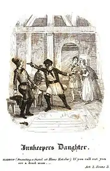 The Innkeeper's Daughter is an 1817 stage melodrama by the British writer George Soane. It was loosely based on the ballad Mary the Maid of the Inn by Robert Southey.[1] It premiered at the Theatre Royal, Drury Lane in London on 7 April 1817.[2] The original cast included Henry Gattie as Frankland, James William Wallack as Richard, Thomas Cooke as Hans Ketzler, Frances Maria Kelly as Mary and Sarah Harlowe as Marian. The music was composed by Thomas Simpson Cooke. Its Irish debut was at the Crow Street Theatre in Dublin on 19 January 1818.[3]