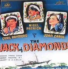 The Jack of Diamonds is a 1949 British adventure film directed by Vernon Sewell and starring Nigel Patrick, Cyril Raymond and Joan Carroll.[1] Its plot follows an ex-soldier who persuades some yacht owners to help recover a treasure chest of jewels he hid off the Belgian coast in 1940 during the Second World War.