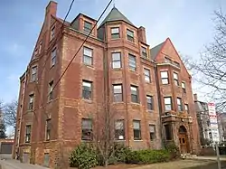 The Jarvis is a historic apartment building at 27 Everett Street, on the north side of the Harvard University campus in Cambridge, Massachusetts. Built in 1890, the 4+1⁄2-story brick building was one of the first apartment houses built in the vicinity of northern Massachusetts Avenue. At the time, Massachusetts Avenue north of Harvard was predominantly lined with large fashionable houses. The Jarvis fit into this to some extent by being designed to resemble a large single family residence of the time. The building has irregular Queen Anne massing, polychrome trim, and massive corbelled end chimneys.[2]