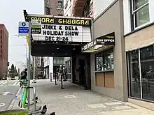 Marquee for The Jinkx and DeLa Holiday Show at the Moore Theatre, Seattle, 2023