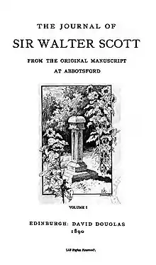 - ↑ Anderson, W. E. K. (1973). "The Journal". In Bell, Alan (ed.). Scott Bicentenary Essays: Selected Papers Read at the Sir Walter Scott Bicentenary Conference. Edinburgh and London: Scottish Academic Press. p. 84. ISBN 070111987X. Retrieved 1 April 2015.