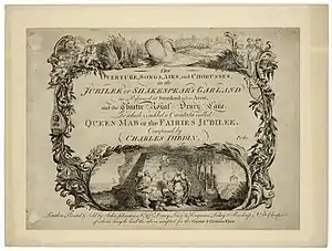 The Jubilee is a 1769 play by the British playwright and actor-manager David Garrick, with music by Charles Dibdin. It was based on his Shakespeare Pageant which he had originally planned to stage during the Shakespeare Jubilee in Stratford-upon-Avon until heavy rain forced it to be abandoned. It was first performed at the Drury Lane Theatre on 14 October 1769[1] and proved a major success, running for ninety performances. This allowed Garrick to recoup much of the money he had spent on the Jubilee celebrations.[2]