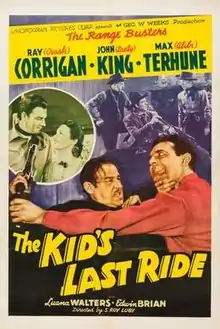 The Kid's Last Ride is a 1941 American Western film directed by S. Roy Luby and written by Earle Snell. The film is the fifth in Monogram Pictures' "Range Busters" series, and it stars Ray "Crash" Corrigan as Crash, John "Dusty" King as Dusty and Max "Alibi" Terhune as Alibi, with Luana Walters, Edwin Brian and Alan Bridge. The film was released on February 10, 1941, by Monogram Pictures.[1][2][3]