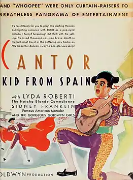 The Kid from Spain is a 1932 American pre-Code black-and-white musical comedy film directed by Leo McCarey. Harry Ruby and Bert Kalmar composed the songs, and Busby Berkeley is credited with creating and directing the film's musical scenes.[5] It was Jane Wyman's film debut.