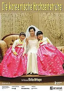The Korean Wedding Chest is a 2009 documentary film about Korean wedding traditions directed by Ulrike Ottinger.[1] The German language film was described as "capturing the collision of ancient tradition and modern culture on the subject of love and marriage in Korea in a film that echoes the beauty, precision and care of the rituals she examines" by the Los Angeles Times.[2]