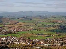 The Kymin (Welsh: Cae-y-Maen),[1] is a hill overlooking Monmouth, in Monmouthshire, Wales. It is located approximately one mile east of Monmouth, on the eastern side of the River Wye and adjacent to the border with the Forest of Dean and England. The summit of the hill, about 800 feet above sea level, is known for its neo-classical monuments, the Roundhouse and the Naval Temple, built between 1794 and 1800. It is registered on the Cadw/ICOMOS Register of Parks and Gardens of Special Historic Interest in Wales. The site is within a designated Area of Outstanding Natural Beauty (AONB) and is owned by the National Trust.