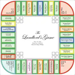 The Landlord's Game is a board game patented in 1904 by Elizabeth Magie as U.S. Patent 748,626. It is a realty and taxation game intended to educate users about Georgism. It is the inspiration for the 1935 board game Monopoly.[1]