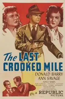 The Last Crooked Mile is a 1946 American crime film directed by Philip Ford and written by Jerry Sackheim and Jerome Gruskin. The film stars Don "Red" Barry, Ann Savage, Adele Mara, Tom Powers, Sheldon Leonard and Nestor Paiva. The film was released on August 9, 1946, by Republic Pictures.[1][2][3]