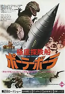 The Last Dinosaur (Japanese: 極底探険船ポーラーボーラ, Hepburn: Kyokutei Tankensen Pōrābōra, lit. 'Polar Probe Ship: Polar Borer') is a 1977 Japanese/American tokusatsu co-production, co-directed by Alexander Grasshoff and Tsununobu Kotani (the latter billed as Tom Kotani),[1] and co-produced by Japan's Tsuburaya Productions and Rankin/Bass Productions. The picture was filmed at Tsuburaya Studios in Tokyo[1] and on location in the Japanese Alps.[2] The film was intended for a U.S. theatrical release, but failed to find a distributor and ended up as a television film, airing on ABC on February 11, 1977 in an edited 92-minute run time. The film was eventually picked up for overseas markets by Cinema International Corporation, where it was released in the unedited 106-minute version as a double feature in the U.K. with the edited version of Sorcerer (the latter considered a remake of The Wages of Fear). Toho also picked up distribution rights to The Last Dinosaur in Japan for a theatrical release utilizing the unedited 106-minute version in English with Japanese subtitles, and later the film debuted on Japanese television dubbed in Japanese.